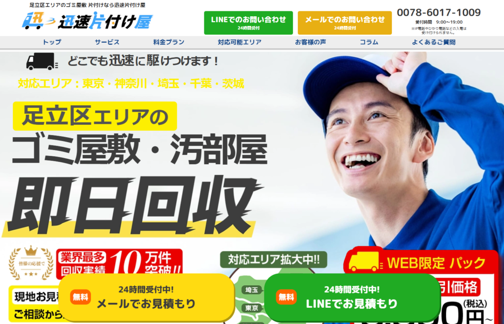 - 年中無休・即日対応可能だから、急ぎの片付けでもスムーズに完了できる