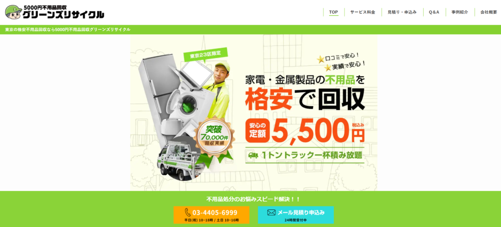強みは自社で海外リユースを行っている点が挙げられます。回収した不用品の中で再利用できるものは海外へ輸出する仕組みを整えているため、処分費用を抑えた作業が可能です。片付け費用が不安な方や、初めて業者に依頼する方、買取サービスを活用したい方におすすめの業者です。