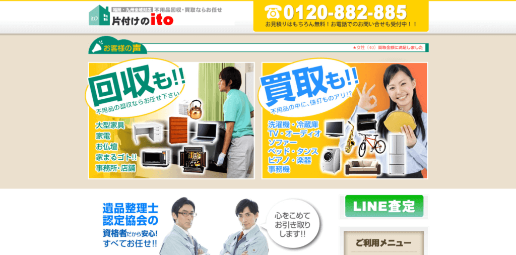 福岡・九州全域で不用品の回収・買取ならおまかせ 片付けのito! メール・LINE査定もOK! 今回は24時間対応の 片付けのito を徹底調査しましたので紹介します。 [clickliscode color="green" type="line" url="https://kaishu-center.com/" target="" r... -