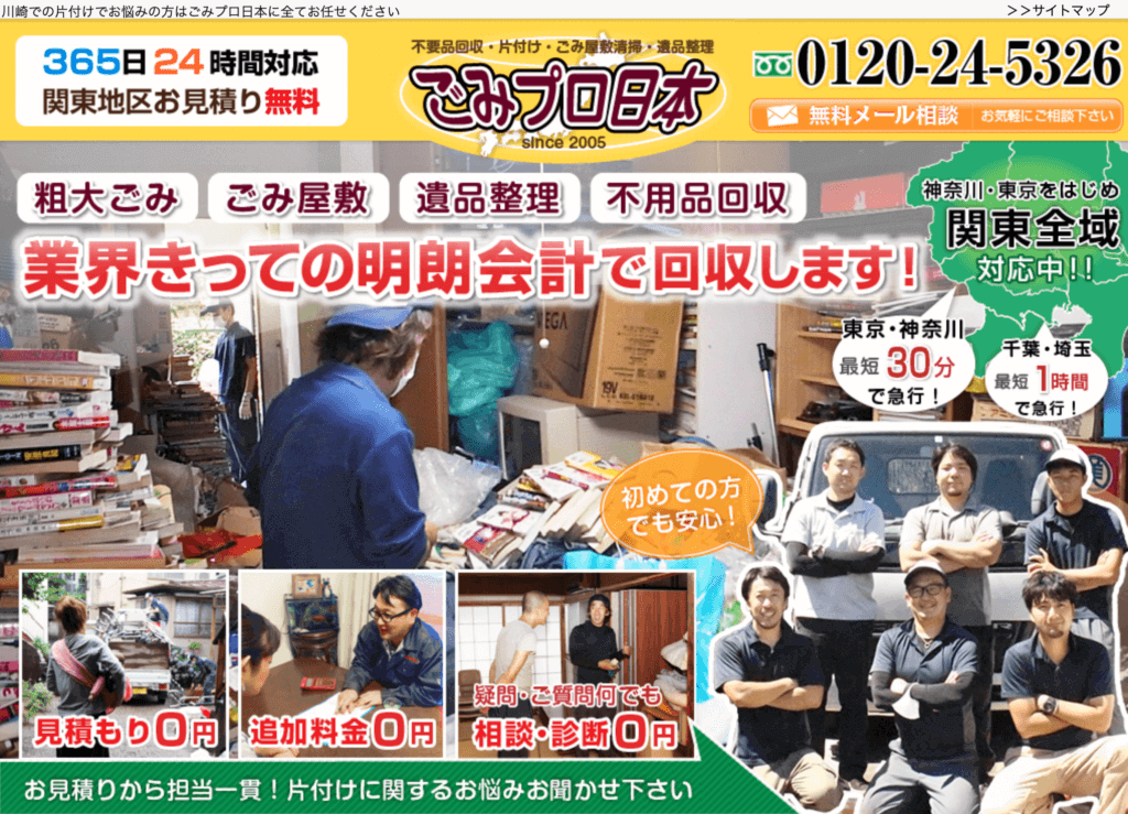 神奈川を中心に関東一円に対応している片付け業者「ごみプロ日本」 独自の料金体系と見積もり時から担当一貫の対応で、安心して依頼することができると人気です。 そんな「ごみプロ日本」の口コミや実績などをまとめたので、是非参考にしてください。 ごみ... -