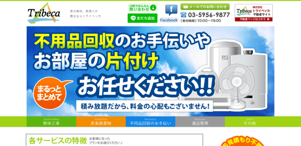 トライベッカは、東京都・埼玉県・千葉県・神奈川県の1都3県を中心に、解体工事・産業廃棄物・不用品回収・遺品整理などを行う業者です。 不用品回収がメインの回収業者とは違い、解体工事や産業廃棄物処理を得意とする会社です。 トライベッカの口コミ・... -