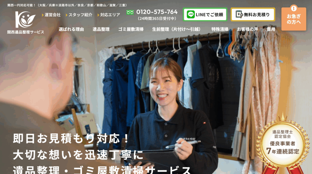 また、広範な地域での対応が可能な点も強みです。大阪府内を拠点としながらも、兵庫県、京都府、奈良県、和歌山県、滋賀県など、関西エリアを中心に広範囲でサービスを提供しています。遠方にお住まいのご遺族様や、複数の地域にまたがる整理が必要な場合でも、安心して依頼できるでしょう。