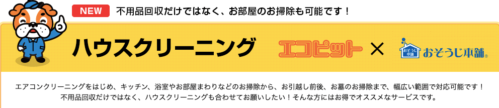| 対応サービス | 不用品回収、粗大ゴミ処分、ゴミ屋敷片付け、遺品整理、引越しに伴う粗大ゴミ回収、ハウスクリーニング |