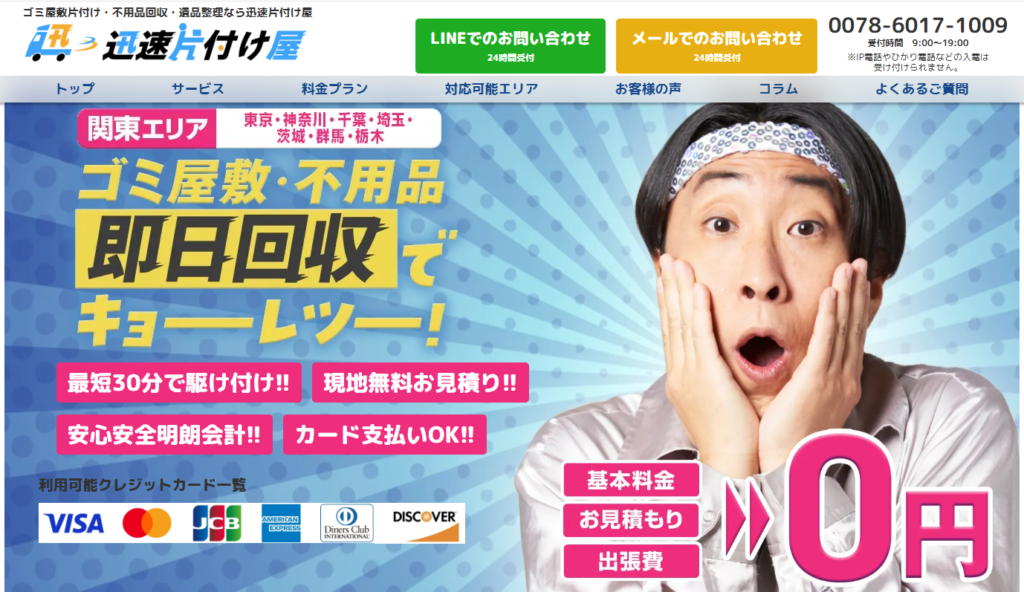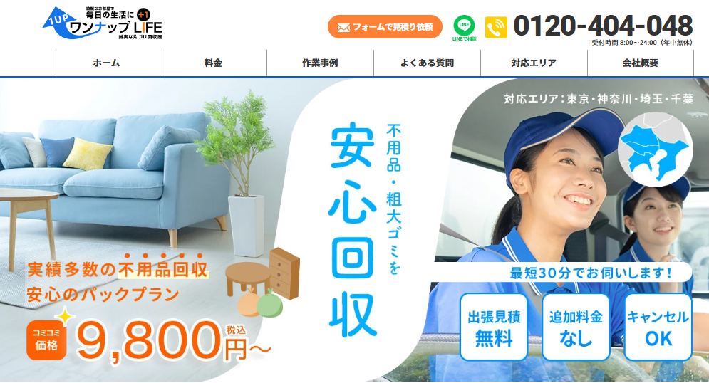 電話やWEBからの問い合わせ後、現地見積もりを経て作業に入る流れとなっており、見積もり後の追加料金が発生しない点も安心材料。急ぎで片付けたい方や、引っ越し・退去期限が迫っている方におすすめの業者です。