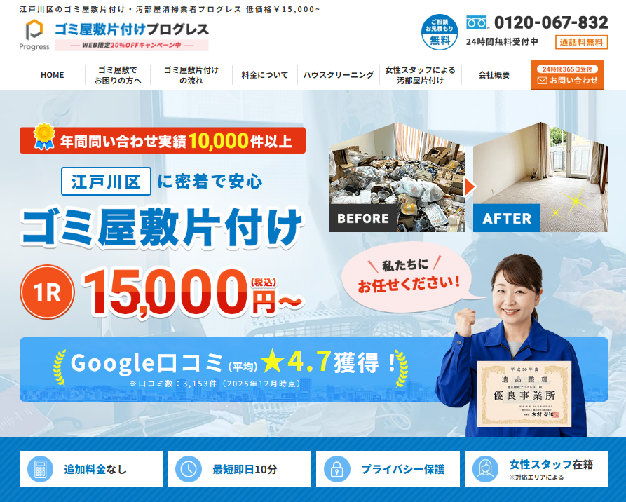 江戸川区で片付け業者を利用する場合、以下の業者に依頼しましょう。