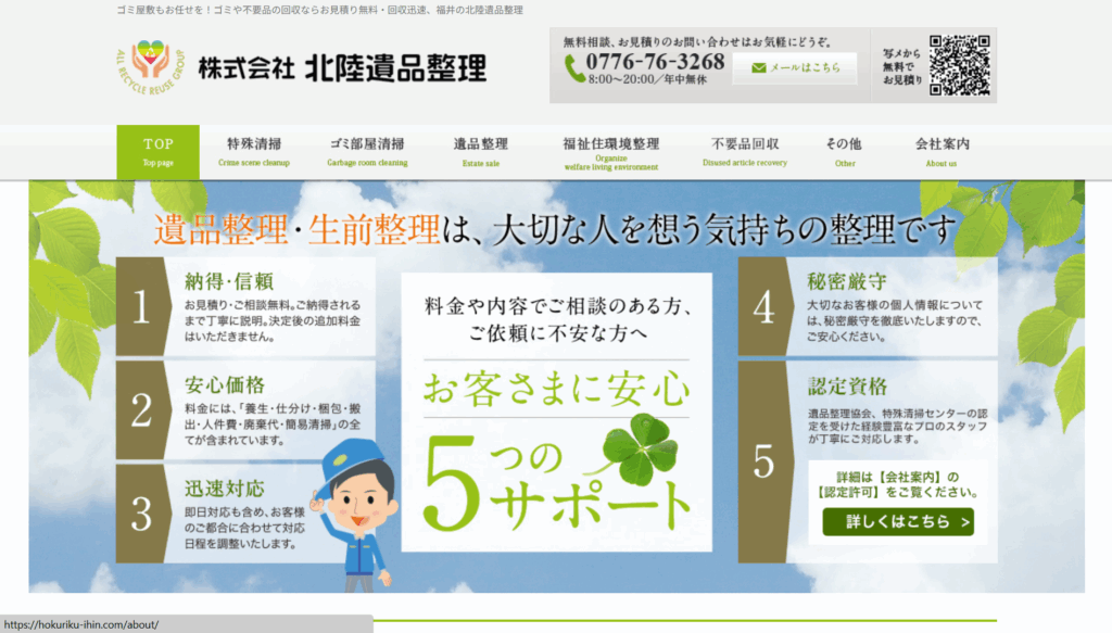 当サイトでは、福井で安心して依頼できる遺品整理業者を厳選しました。