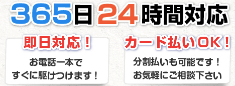 365日年中無休で、24時間対応しており、即日での対応も可能です。