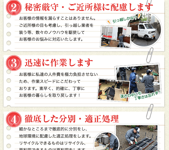 ごみプロ日本はご近所の目も考えて、引っ越し業社を装うなど、そのサポートは行き届いています。