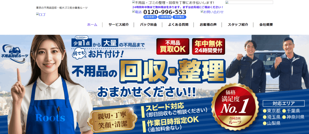 必要な物と不要な物をしっかり確認しながら作業してくれるため、「大切な物まで捨てられてしまうのでは」と心配な方も安心の体制です。また、女性スタッフによる対応や深夜・早朝の作業にも柔軟に応じてくれる点も魅力。見積もり後の追加費用が一切かからない明朗会計で、初めての依頼でも不安なく利用できるおすすめの業者です。