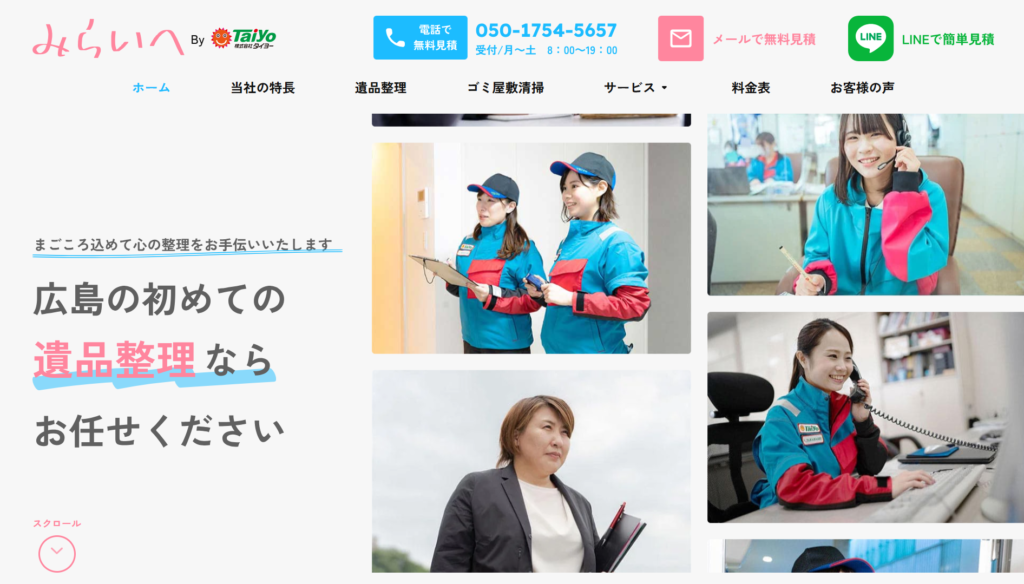公式サイトをチェックし、「遺品整理士が在籍しているか」「供養や買取に対応しているか」といった、遺族に寄り添うサービスがあるかを確認します。