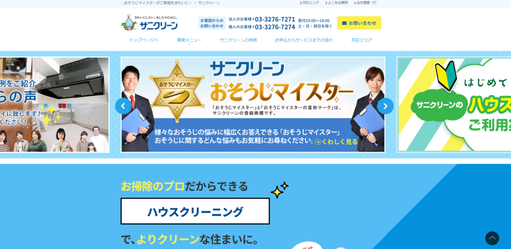 サニクリーンは、お掃除に関するお悩み・ご相談に応える「おそうじマイスター」を育成する制度を独自に導入しているので、お客様の疑問点に的確に答えてくれる心強さもあるでしょう。