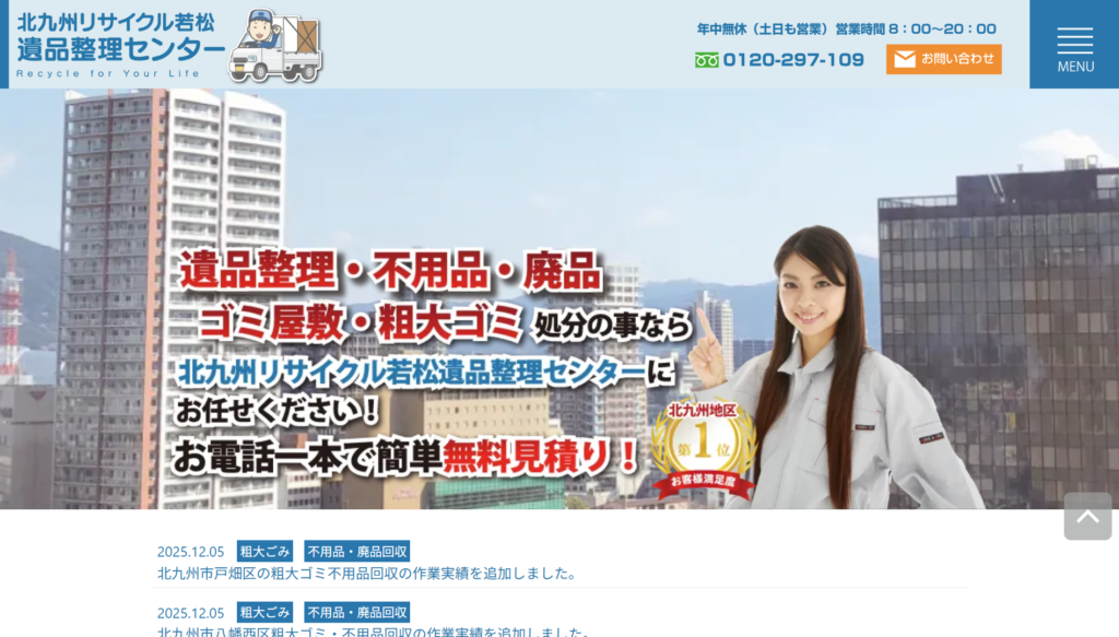 | 2 | 北九州リサイクル若松遺品整理 センター | 4.5/5.0 | 最短即日で、少量からゴミ屋敷まで対応 | 福岡県全域 | 有り◯ | 在籍◯ | 加入済◯ | 対応可◯ |