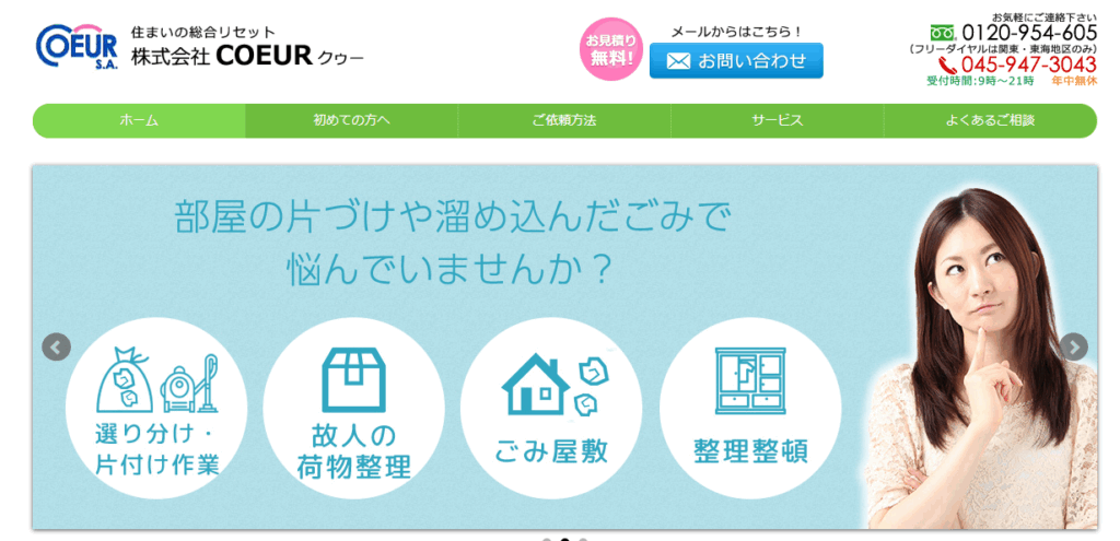 片付けと引っ越しを依頼、複数の会社様から見積りの印象の良かったCOEURさんにお願いしました!普通の引っ越し屋さんでは不用品の処分が出来ずCOEURさんは処分も含め1度に済みました!退去時に簡単な清掃もサービス頂き満足でした!ありがとうございました!実家の遺品整理も時期が来たらよろしくお願い致します!