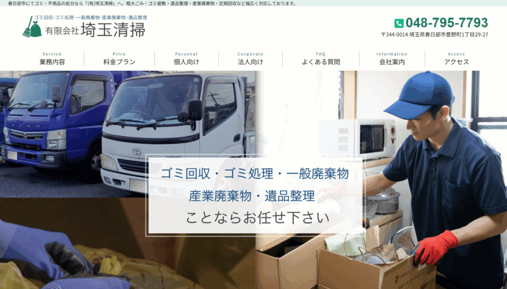 この記事では、春日部市から正式に許可を受けた「一般廃棄物収集運搬業者」、および、その許可業者と提携している遺品整理業者のみをご紹介しています。大切な作業を、安心して任せられる業者選びにお役立てください。
