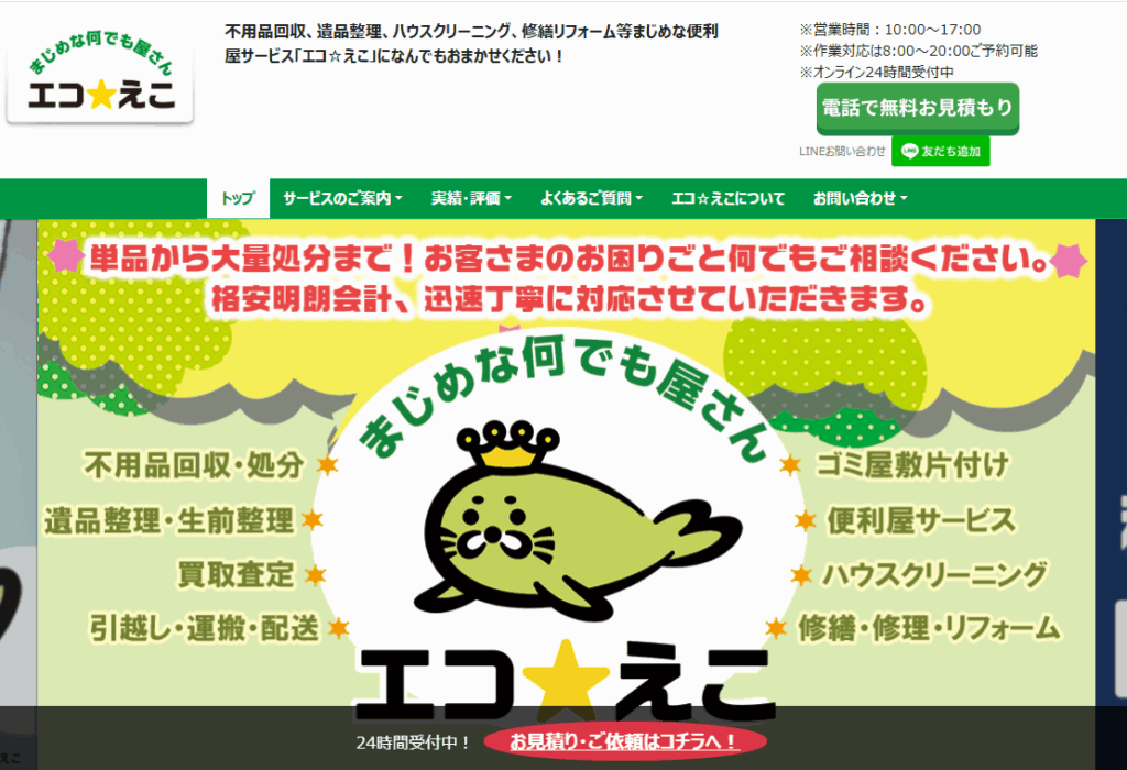 さらに、市から正式に「一般廃棄物収集運搬業許可」を取得しているため、法律を守った安心の作業が可能です。見積もりは無料で、下見も依頼できるため「まずは相談してみたい」という方にも寄り添います。初めて片付けを依頼する方や、信頼できる業者を探している方におすすめの業者です。