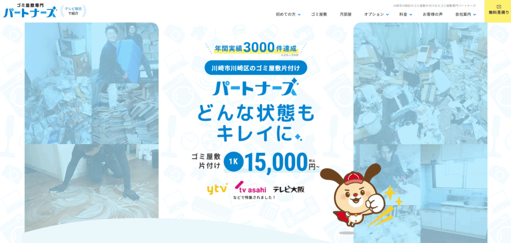 ![]() ゴミ屋敷専門パートナーズ | 1K 15,000円〜 | 公式 | 4.5/5.0 |
