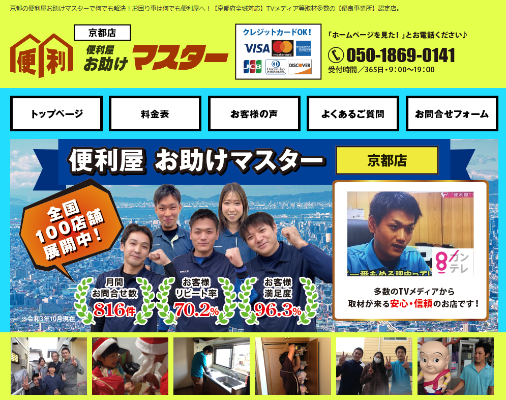 急な依頼にもかかわらず、休日に駆けつけて下さった便利屋、京都nsセンターさん、有難う御座います。安価で迅速な対応に感謝です。助かりました。有難う御座います。またお願い致します。