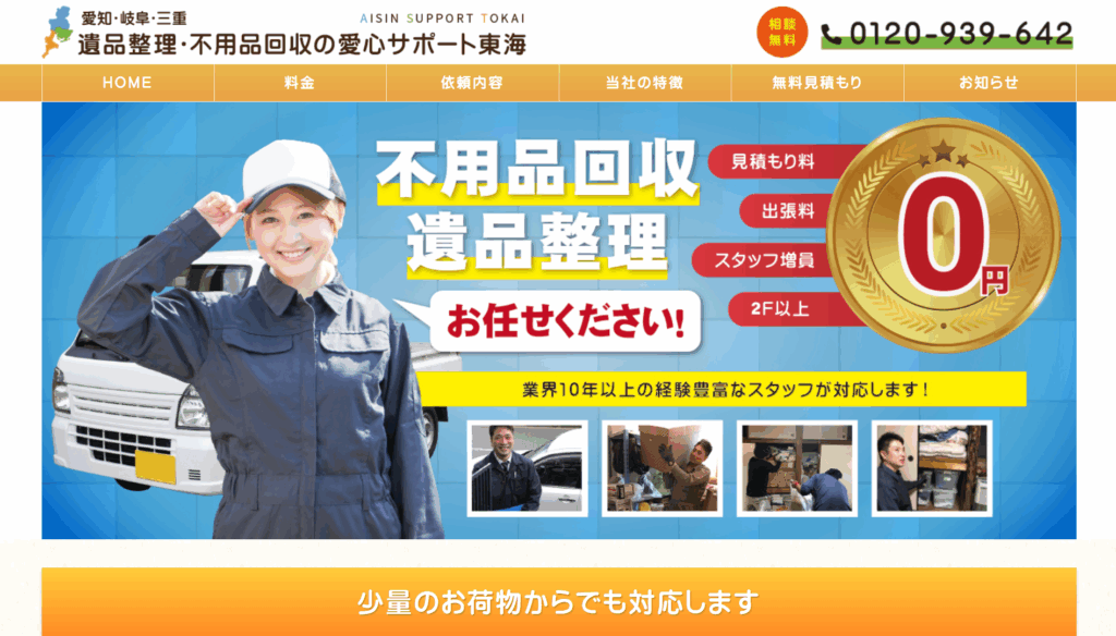 | 7 | 片付けライフ | 3.5/5.0 | 見積もり・出張費・ 追加料金すべて無料 | 三重県全域 (一部除く) | 有り◯ | 在籍◯ | 記載なし | 記載なし |