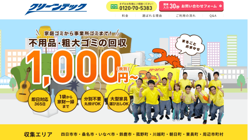 | 10 | クリーンテック | 3.5/5.0 | 午前中までの依頼で即日対応可能 | 三重県全域 (一部除く) | 有り◯ | 記載なし | 記載なし | 記載なし |