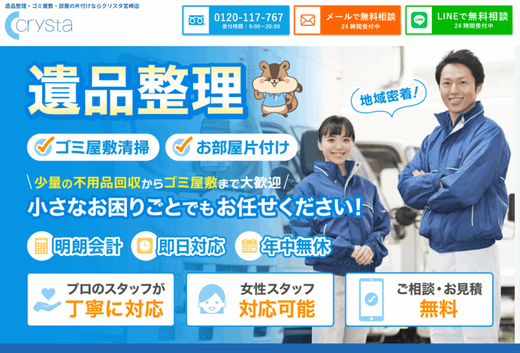 宮崎のおすすめ不用品回収業者をご紹介してきましたが、どの業者も魅力的で「どこを選べばいいんだろう?」という方も多いのではないでしょうか。もし迷ってしまったら「Crysta(クリスタ)」が最もおすすめです。