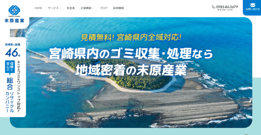 | 4.有限会社末原産業 | ![]() | 3.5/5.0 | 公式 | 19,800円〜 | 記載なし | ◯ 無料 | 記載なし | ◯ 有り | ◯ 有り | ◯ 有り | ◯ 法人 | 9:00〜17:00 | 現金・クレジットカード・電子マネー |