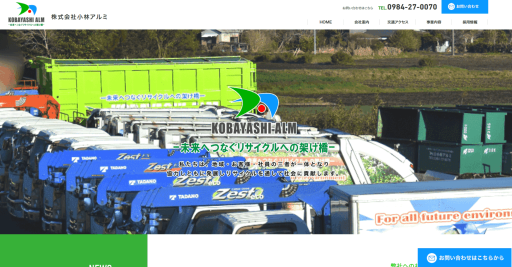小林アルミは、一般廃棄物処理(収集運搬)、家屋解体、粗大ごみ回収・遺品整理、リサイクル事業を展開する企業で、地域社会に貢献しています。地域密着の経営を目指していて、市民による自主的な資源回収活動(地域団体・PTA・子ども会・部活動)を全面的に支援。