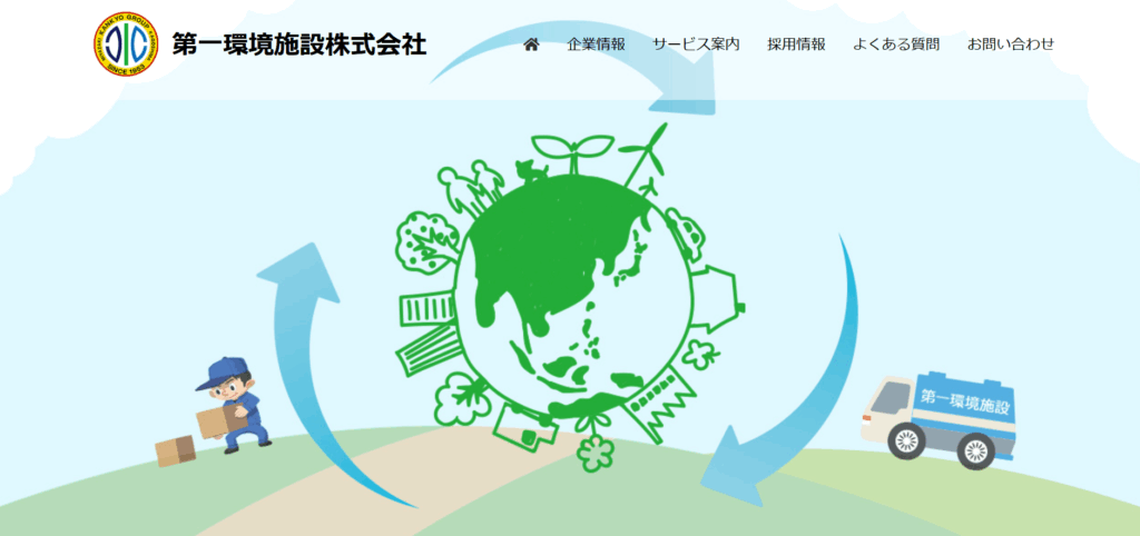 | 5.第一環境施設株式会社 | ![]() | 3.5/5.0 | 公式 | 2,000円~(家電製品の引き取り) | ◯ 可能 | ◯ 無料 | 記載なし | ◯ 有り | ◯ 有り | 記載なし | ◯ 法人 | 記載なし | 現金 |