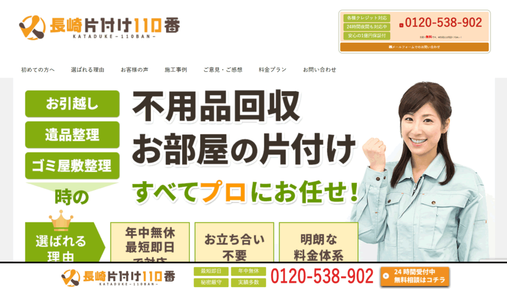 また、即日対応も可能な体制を整えています。急な退去が必要になった、遠方から長崎に来る日程が限られている、といった緊急性の高い状況でも、迅速な見積もりと作業開始で対応します。