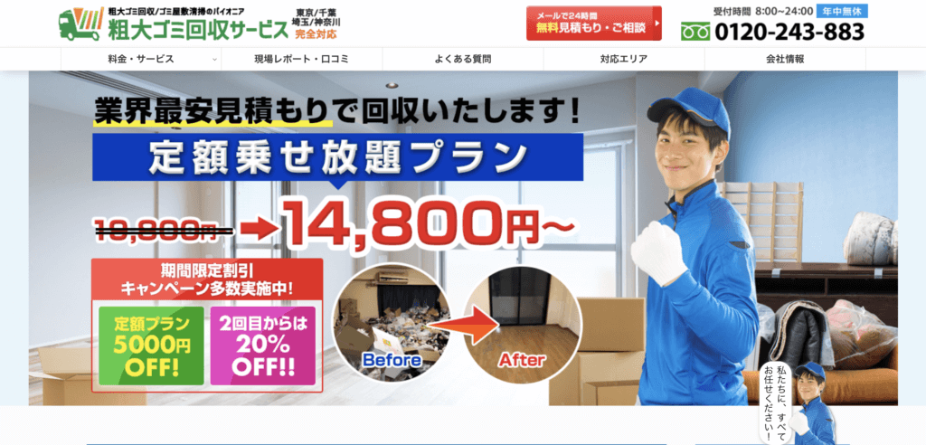 料金もパック料金で分かりやすく、Webサイト限定の割引きや、2回目以降の依頼には20%引きしてくれるという安さも魅力です。