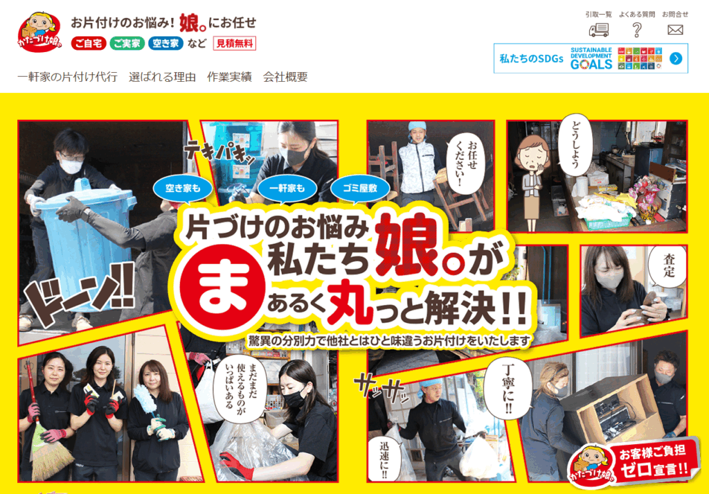 夜間の回収や非対面サービスにも応じられる点は、プライバシー面でも安心です。現地調査と見積もりが無料で、画像を送って見積もりも可能なため、忙しい方でも利用しやすい環境が整っています。大量の荷物で困っている、ゴミ屋敷状態をすぐに解消したいという方におすすめの業者です。