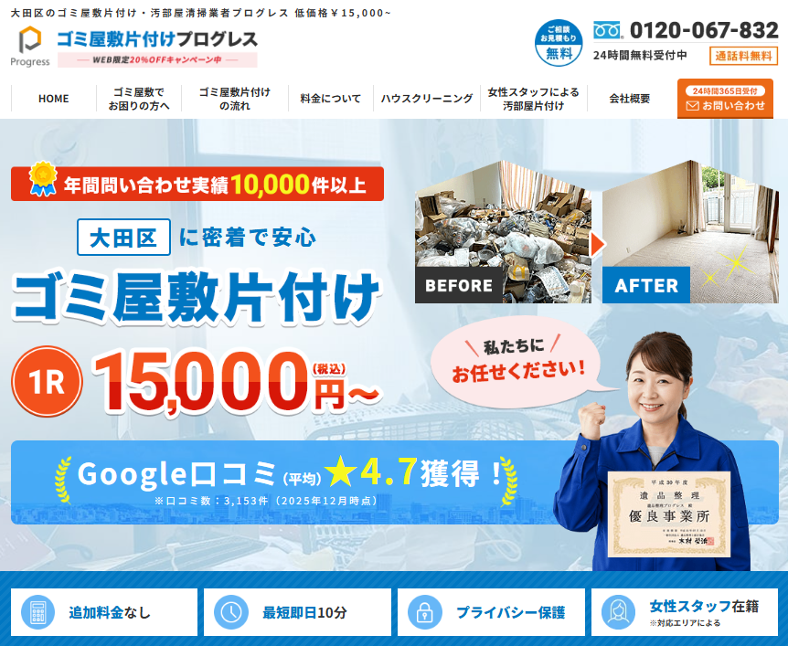 ![]() ゴミ屋敷専門パートナーズ | 1K 15,000円〜 | 公式 | 4.5/5.0 |