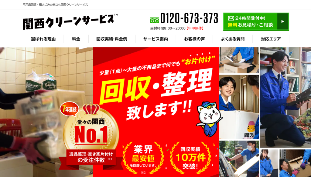 | 2 | 関西クリーン サービス | 4.5/5.0 | 買取査定後、即現金化してくれる | 大阪府全域 (一部除く) | 提携◯ | 在籍◯ | 加入済◯ | 対応可◯ |