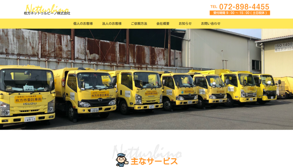 | 9 | 枚方 ネットゥルビーノ | 3.5/5.0 | 場合によっては即日対応可能 | 大阪府全域 (一部除く) | 有り◯ | 記載なし | 記載なし | 記載なし |