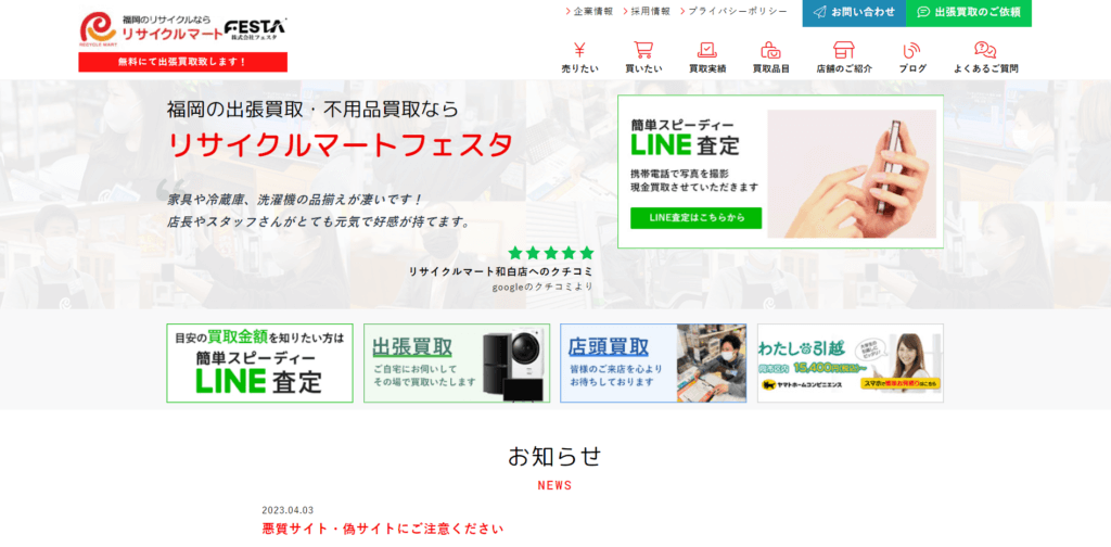 | 会社名 | リサイクルマートフェスタ(株式会社フェスタ) |