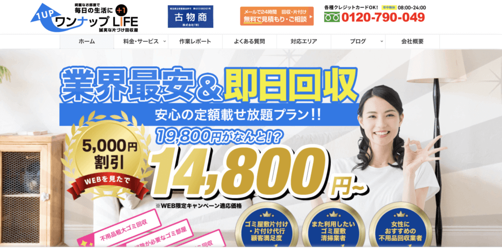 2020年の顧客満足度・また利用したいゴミ屋敷清掃業者・女性にオススメの不要品回収業者で1位を獲得した、口コミ評価が高い業者です。
