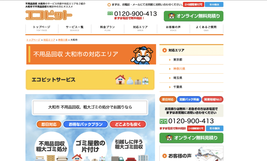 エコピットは、東京・神奈川を中心に活動している片付け業者です。