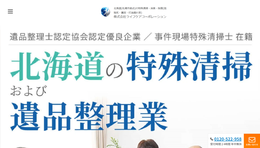 遺品整理士・事件現場特殊清掃士が在籍北海道全域