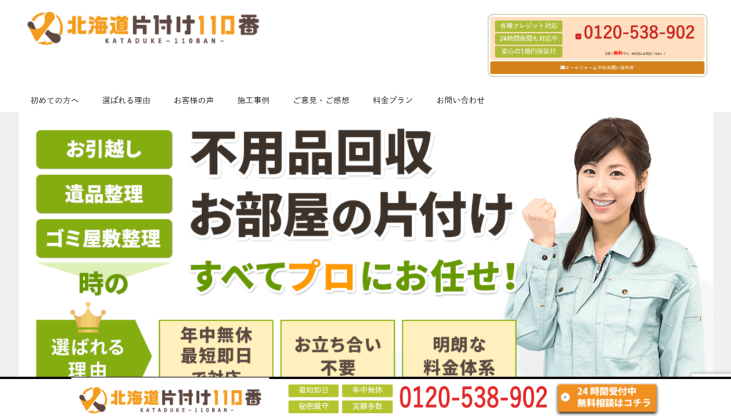 見積もり料金からの追加費用一切なし北海道全域