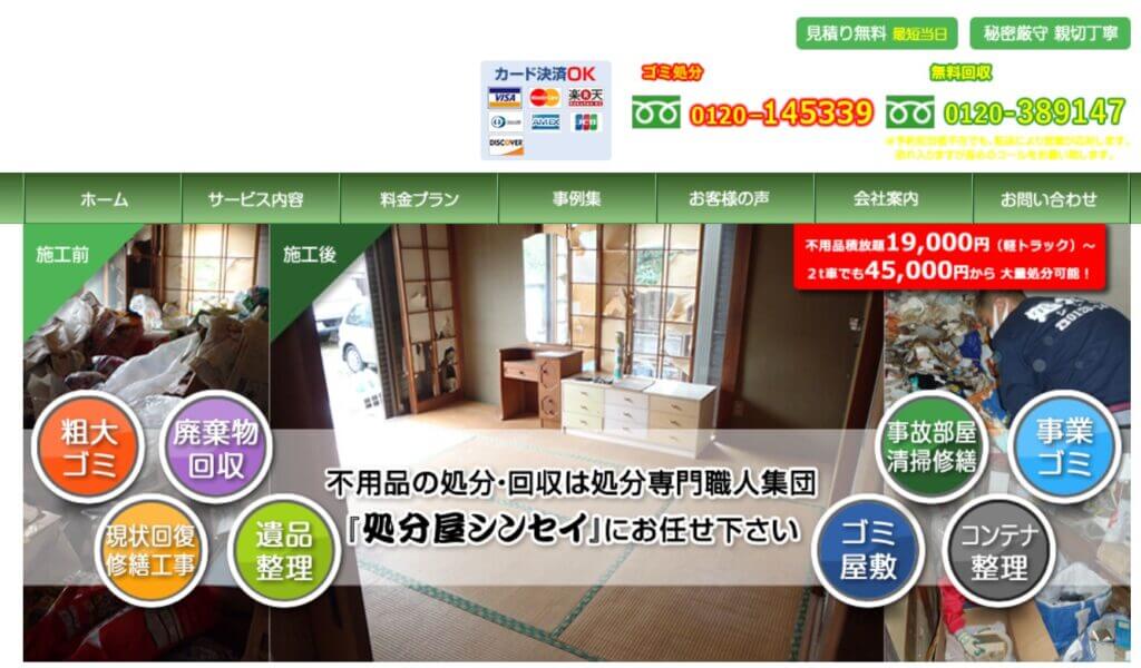関東で不用品回収業者をお探しの方にオススメの「処分屋シンセイ」