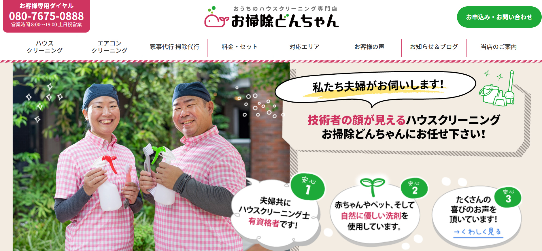 おそうじどんちゃんは、夫婦で運営している草加市のエアコンクリーニング業者です。夫婦共にエアコンクリーニング士なので、エアコンクリーニングに関する知識や経験が豊富で、サービスの質が高く信頼がおけるでしょう。