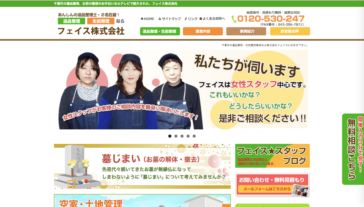 株式会社フェイスは、テレビなどにも取り上げられている優良業者で、遺品整理士の資格を持つスタッフも在籍しています。