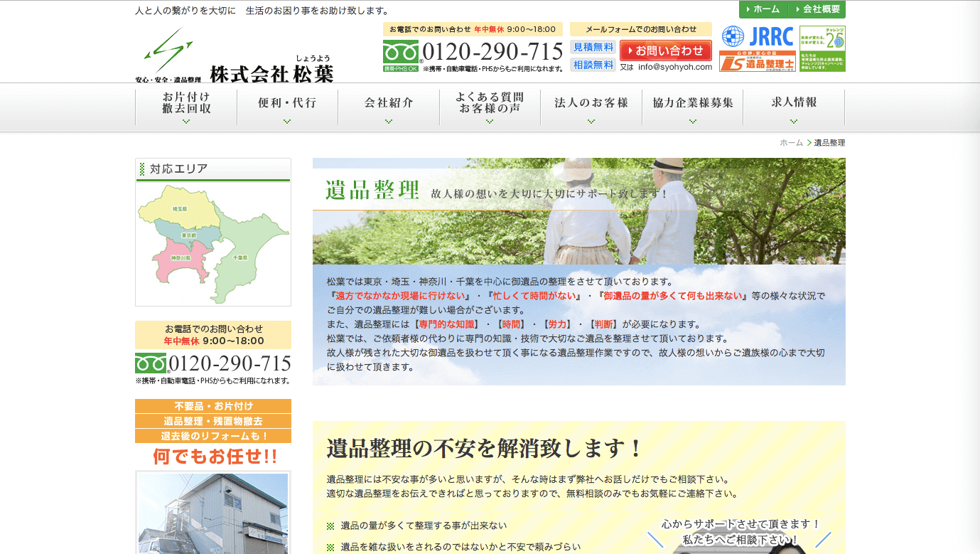 代表は心理カウンセラーの資格も持っていますので、遺品整理に関する心理的なケアも行なってもらえます。