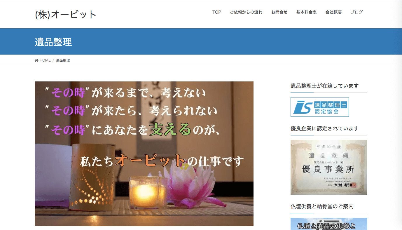 株式会社オービットでは、遺品整理に関する遺族の精神的・肉体的負担を少しでも減らす丁寧な遺品整理を行なってくれます。