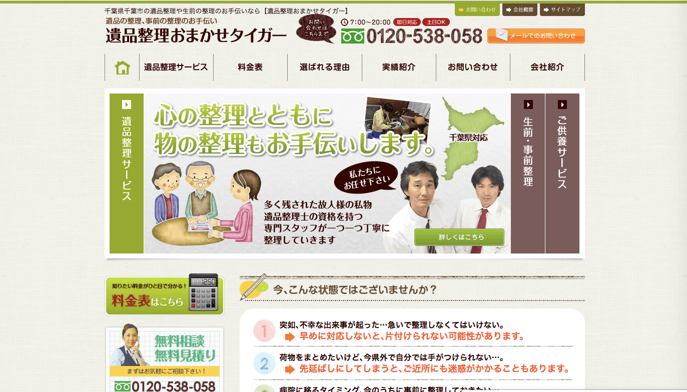 遺品整理おまかせタイガーは、遺品整理の他にも生前整理や供養などにも対応した、地域密着型の優良業者となっています。