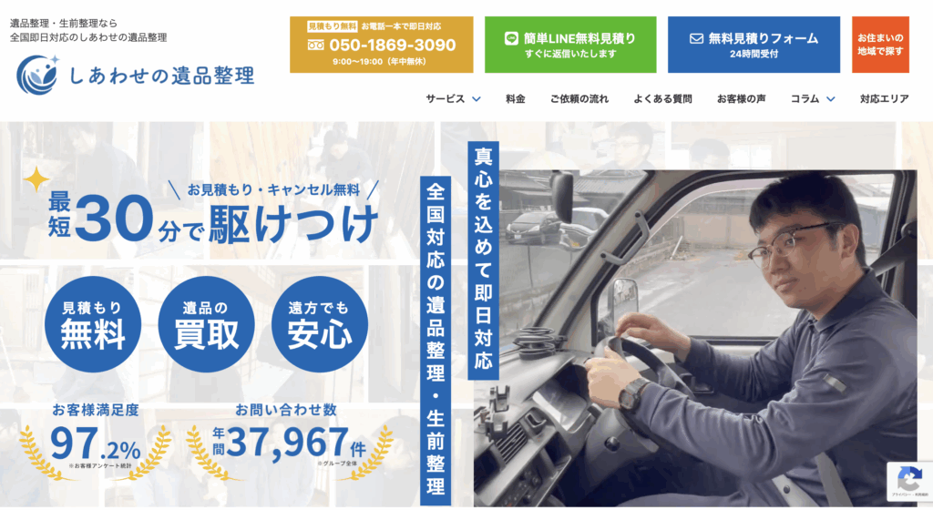 そして何よりも、お客様からの連絡後、最短30分で現場に駆けつけるスピード対応が強みです。急な遺品整理や退去日が迫っているなど、時間的な制約がある場合でも、迅速な対応で遺族の負担を軽減します。