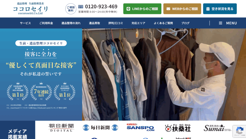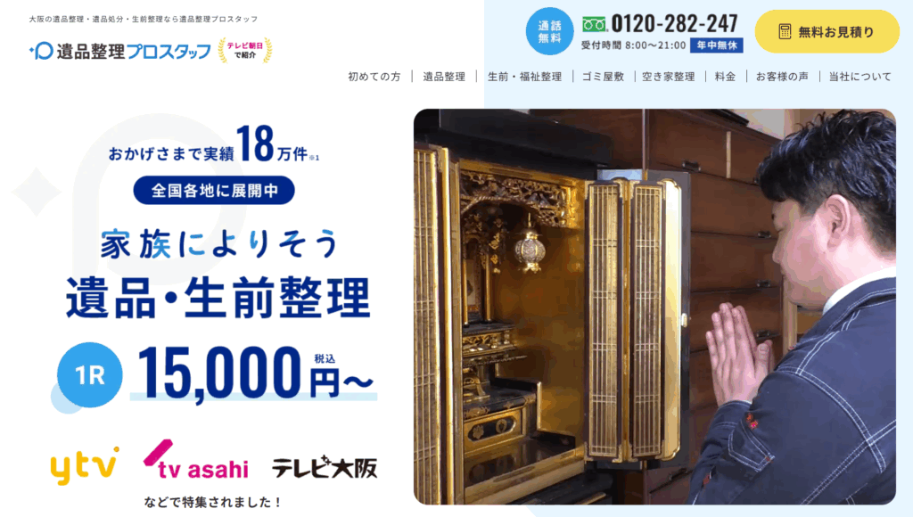 | おすすめポイント | ・問い合わせ方法が豊富 ・遺品整理にまつわるさまざまな要望に対応 ・いつでも見積もり0円 |