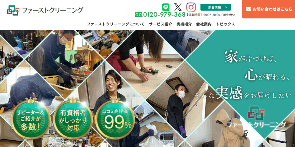 また、臭いのデータを数値化することで、消臭効果を「見える化」し、依頼者に安心感を提供しているところが強み。遺品整理や家財整理、災害復旧など、多岐にわたるサービスを自社で対応しており、24時間365日対応可能です。