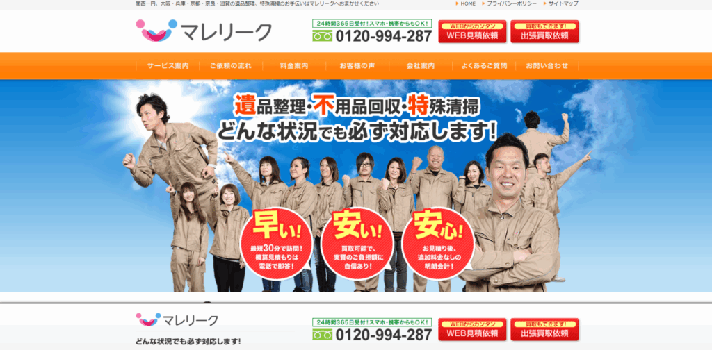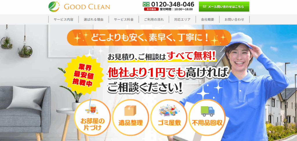 お部屋片づけから遺品整理、ゴミ屋敷清掃、不用品回収まで幅広く対応しています。相談や見積もりが無料なので、相見積もりを出したい方にもおすすめです。