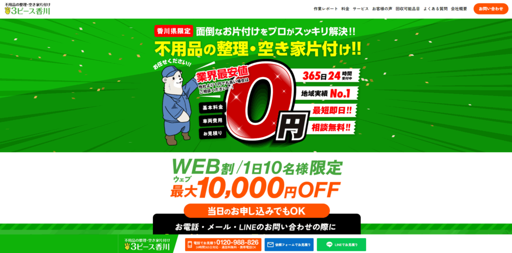 見積もり時に提示された金額がそのまま最終金額となるため、後から高額請求される心配がなく、初めて依頼する方でも安心して利用できます。また、電話やLINEによる無料見積もりに対応しており、現場の状況をすぐに相談できる点も魅力です。