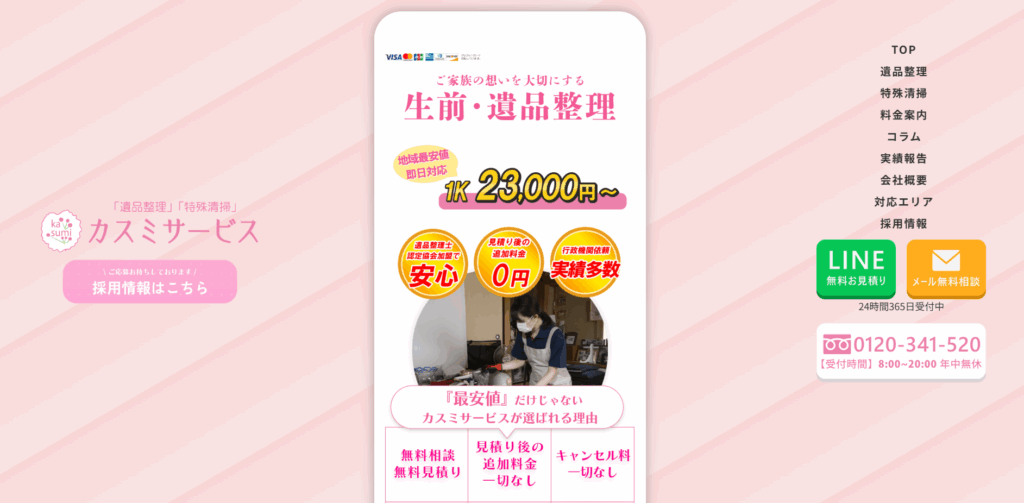 | 遺品整理 | 7万円〜 |